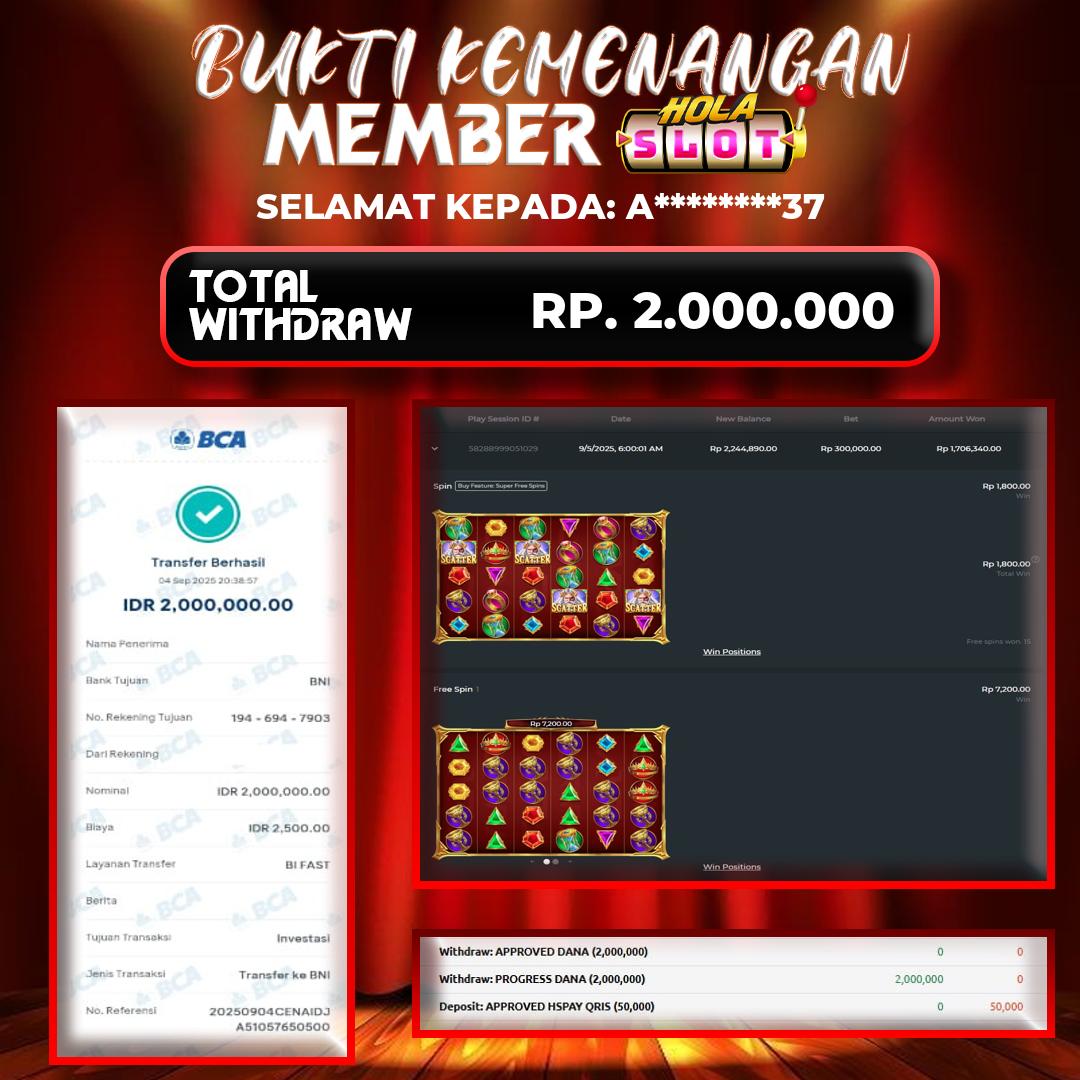 Selama bermain di HOLASLOT, banyak pemain telah meraih kemenangan besar yang dibagikan melalui halaman testimoni kami. Oleh karena itu, testimoni ini menjadi bukti nyata bahwa peluang menang sangat terbuka bagi siapa saja. Selanjutnya, dengan banyaknya promo menarik yang tersedia setiap hari, para pemain memiliki kesempatan lebih besar untuk meraih hasil maksimal. Sementara itu, berbagai bonus seperti cashback, free spin, dan turnamen berhadiah terus diluncurkan untuk menambah keseruan. Sebagai kesimpulan, HOLASLOT bukan hanya tempat bermain game online, tapi juga ladang keberuntungan yang layak Anda coba sekarang juga!.