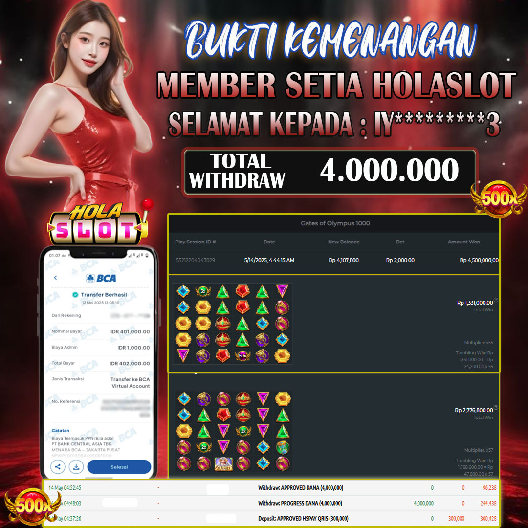 Selama bermain di HOLASLOT, banyak pemain telah meraih kemenangan besar yang dibagikan melalui halaman testimoni kami. Oleh karena itu, testimoni ini menjadi bukti nyata bahwa peluang menang sangat terbuka bagi siapa saja. Selanjutnya, dengan banyaknya promo menarik yang tersedia setiap hari, para pemain memiliki kesempatan lebih besar untuk meraih hasil maksimal. Sementara itu, berbagai bonus seperti cashback, free spin, dan turnamen berhadiah terus diluncurkan untuk menambah keseruan. Sebagai kesimpulan, HOLASLOT bukan hanya tempat bermain game online, tapi juga ladang keberuntungan yang layak Anda coba sekarang juga!.